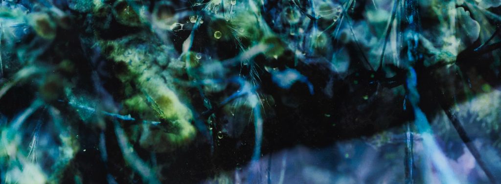Die Arbeit untersucht, wie natürliche Formen unter dem Einfluss von Feuchtigkeit und Bildüberlagerung an Stabilität verlieren und neue, komplexe Strukturen bilden. leaking nature zeigt Natur in einem Zustand der Durchlässigkeit – als ein System, das sich fortlaufend verändert und dessen Grenzen sich im Bildprozess verschieben.