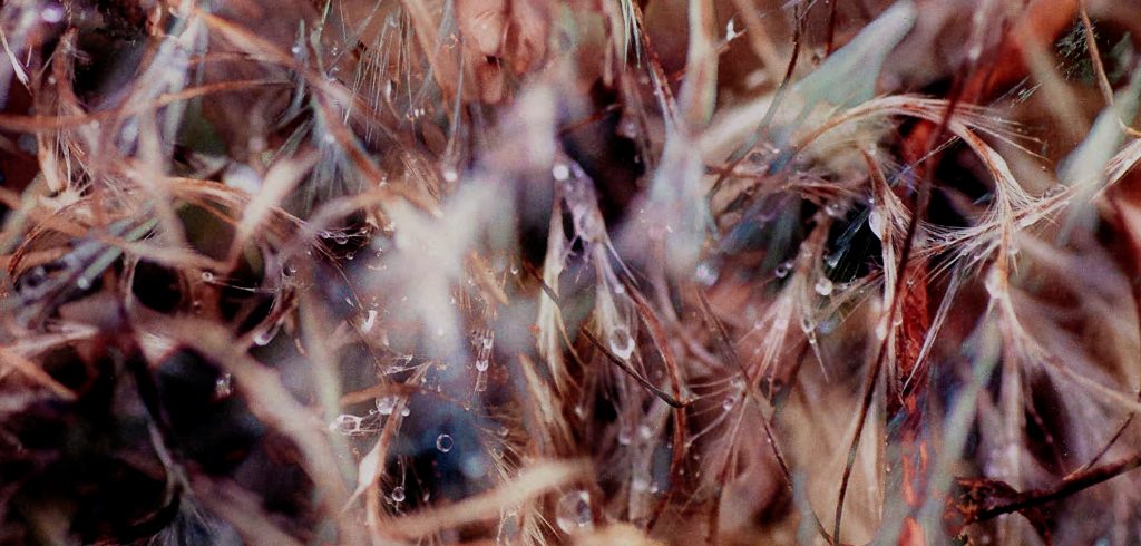 Das Wasser spielt dabei eine zentrale Rolle: Es verändert die Konturen der Pflanzen, verbindet einzelne Bildelemente und erzeugt Übergänge zwischen klaren und diffusen Bereichen. Die Schichtung lässt die Motive teilweise ineinander übergehen, wodurch Tiefe und Bewegung sichtbar werden.